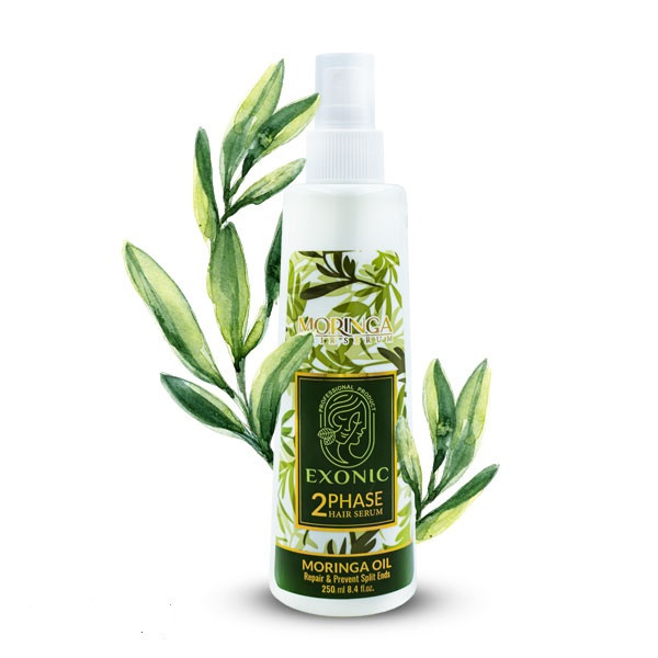 سرم دو فاز مو مورینگا اکسونیک، حاوی روغن گیاه مورینگا است که سرشار از مواد مغذی، مواد معدنی و اسیدهای آمینه با ارزش است که به عنوان آنتی اکسیدان محسوب می شود. همچنین حاوی کراتین هیدرولیز شده است.