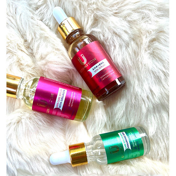 محتویات پک روشن کننده و شفاف کننده صورت لاکچری کوین شامل سرم هیالورونیک اسید، سرم کلاژن، سرم لایه بردار لاکچری کوین می باشد :